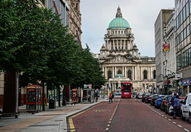 - Ferry Cairnryan ↔ Belfast por el North Channel y circuito de murales políticos de Belfast, ayuntamiento eduardiano y astilleros del Titanic en Belfast.